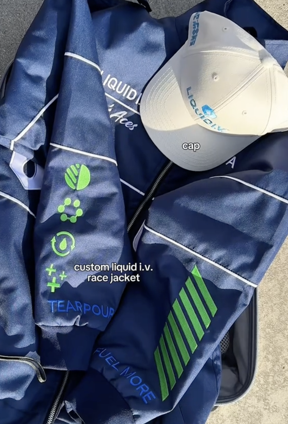 Custom performance jackets designed for Ayan Broomfield’s “Aces” during Liquid I.V.’s activation at the Formula 1 Las Vegas Grand Prix.